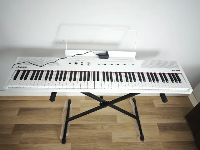 Alesis Recital White - Teclado de Piano Digital de color blanco con 88 Teclas Semipesadas de Tamaño Completo