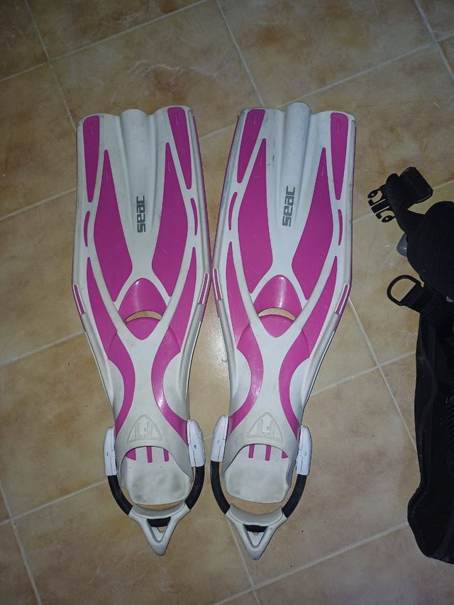 Detalles del productoAletas de buceo de la marca SEAC, en buen estado. Chaleco submarinismo aqualung en buen estado se venden por falta de uso. Se venden juntos al precio indicado y tambien se puede por separado, precio negociable.