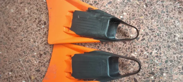 Aletas de buceo de color naranja y negro. Perfectas para natación o snorkel. - Diseño ergonómico. - Material resistente.
