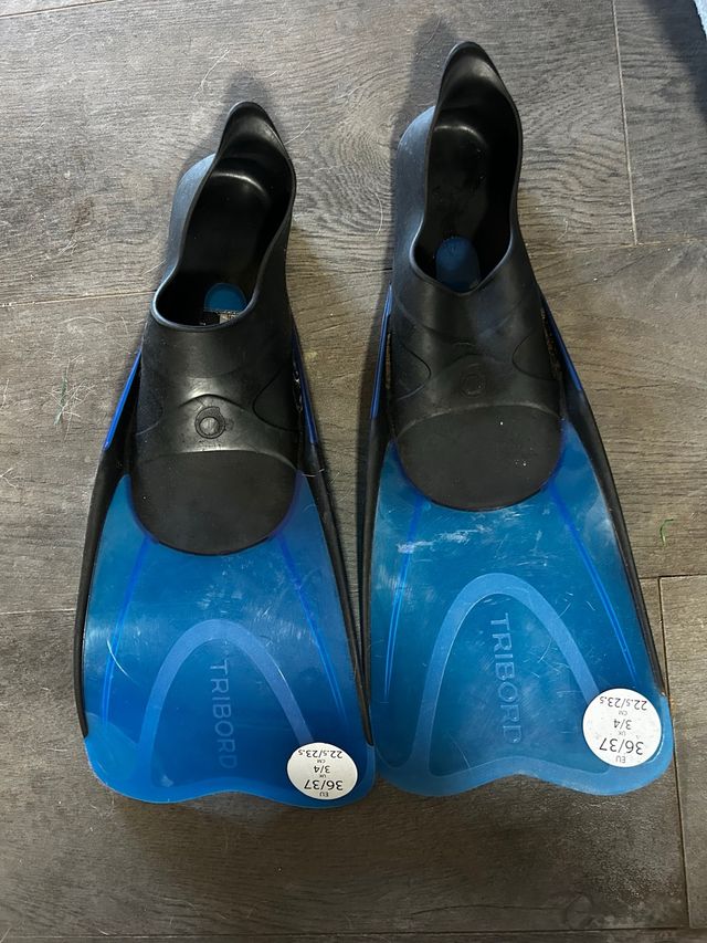Aletas de natación de la marca Tribord en color azul y negro. Usadas una vez. - Talla EU 36/37. - Medida CM 22.5/23.5.