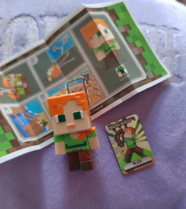 Figura de Alex del videojuego Minecraft de kinder huevo Incluye una tarjeta coleccionable. - Figura de personaje. - Tarjeta temática de Minecraft.