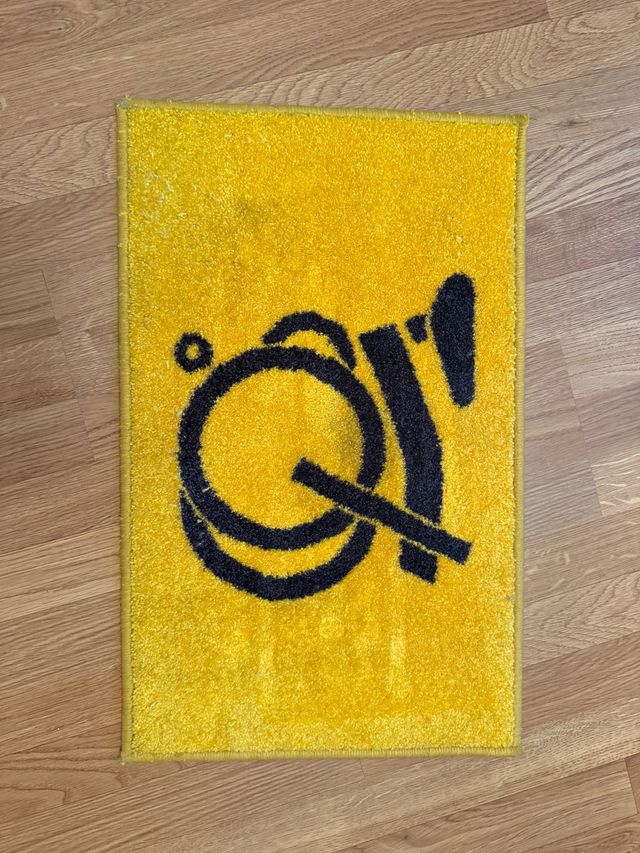 Alfombra de color amarillo con el logo de Brompton. 64x40 - Diseño llamativo. - Ideal para dar un toque distintivo.