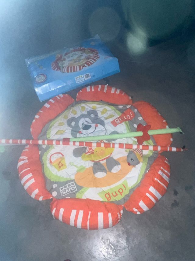 Detalles del productoAlfombra de actividades para bebés con un diseño colorido y divertido. Incluye arcos con juguetes colgantes para estimular el desarrollo del bebé.