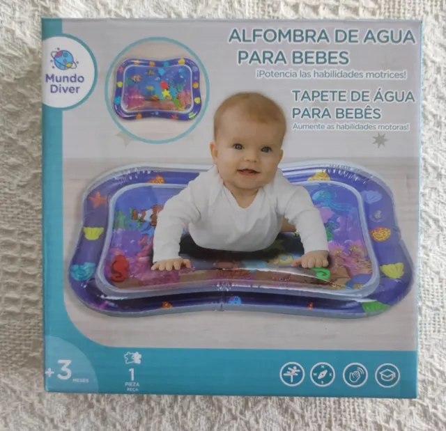 Detalles del productoAlfombra de agua para bebés de la marca Mundo Diver. Ideal para estimular el desarrollo motriz desde los 3 meses.