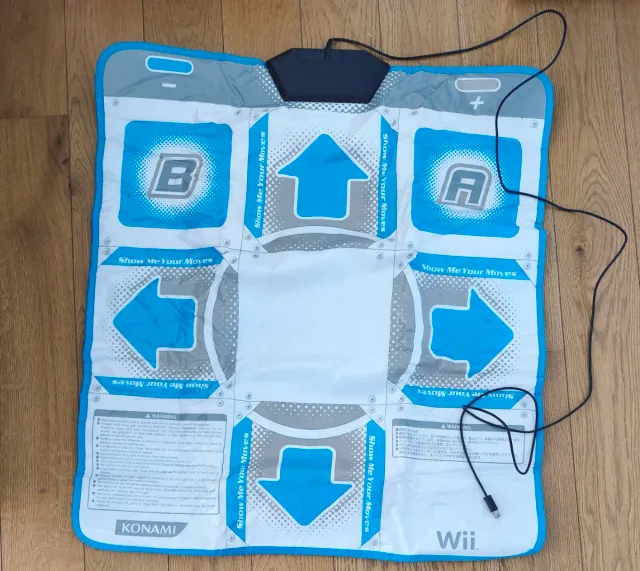 Alfombra de baile para Wii de Konami, con diseño de flechas y botones. - Incluye módulo de conexión. - Compatible con juegos de baile para Wii.