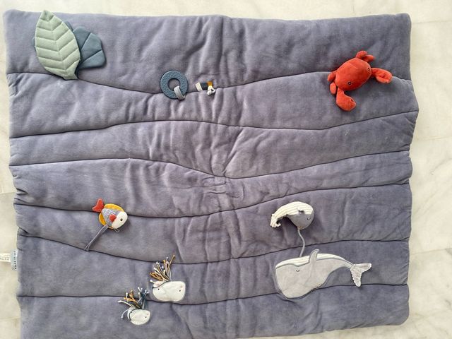 Detalles del productoAlfombra de juego con temática marina para bebés. Diseñada para estimular el desarrollo sensorial y la diversión.