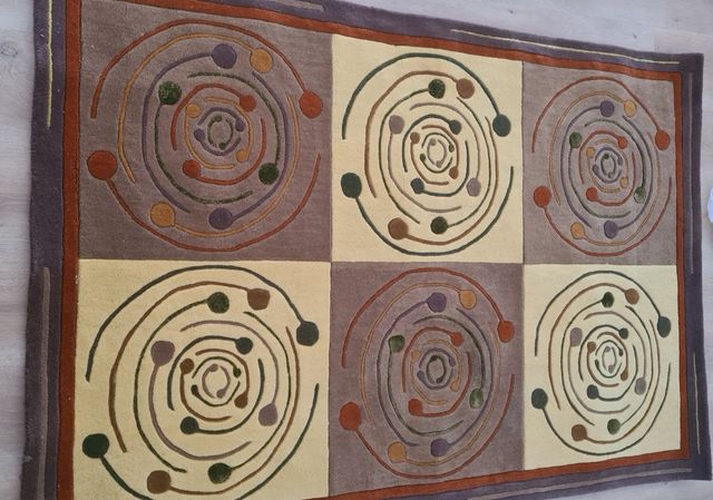 Detalles del productoSe vende alfombra de 100% LANA, nueva, nunca se ha usado. Fabricada a mano en India. Muy bonita. Me costó originariamente 550€ Medidas del producto