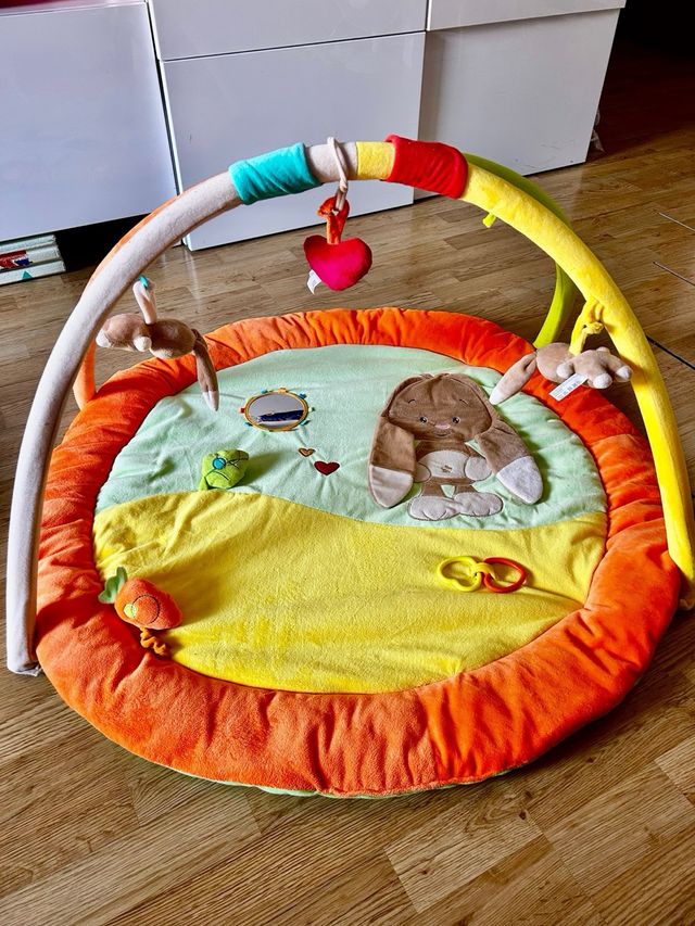 Detalles del productoPreciosa alfombra de juegos para bebés, ideal para el desarrollo sensorial y motor. Está en muy buen estado y lista para un nuevo hogar.