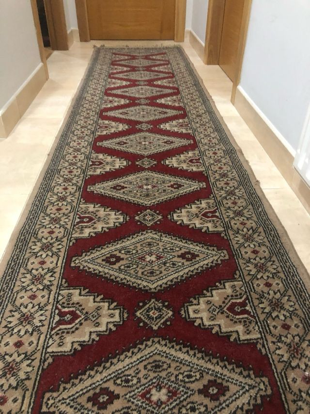 Alfombra Persa pasillo roja y beige.