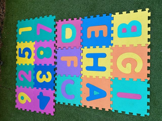 Vendo alfombra educativa de espuma EVA con piezas de letras y números.