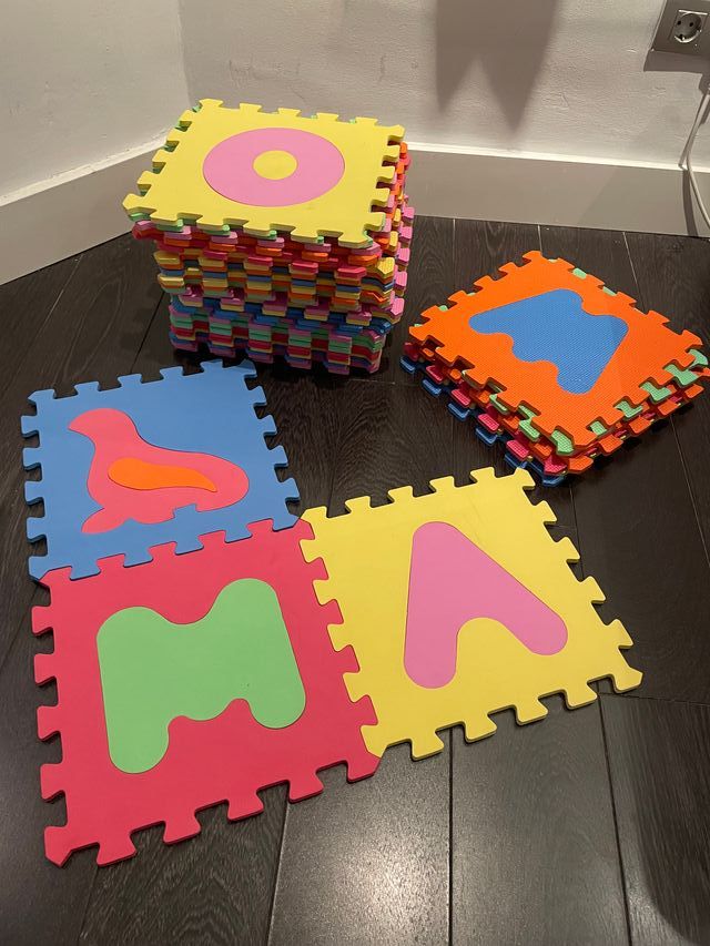 Detalles del productoAlfombra de suelo con piezas de puzzle para bebés. Mezcla de Letras y animales. Varios colores. Ideal para crear un espacio de juego seguro y divertido.