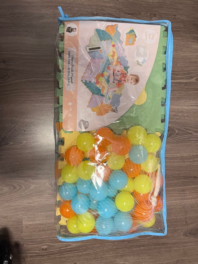 Alfombra de juegos con piezas de puzzle y 40 bolas. Sin estrenar. - Tapiz de EVA. - Incluye 40 bolas de PVC.