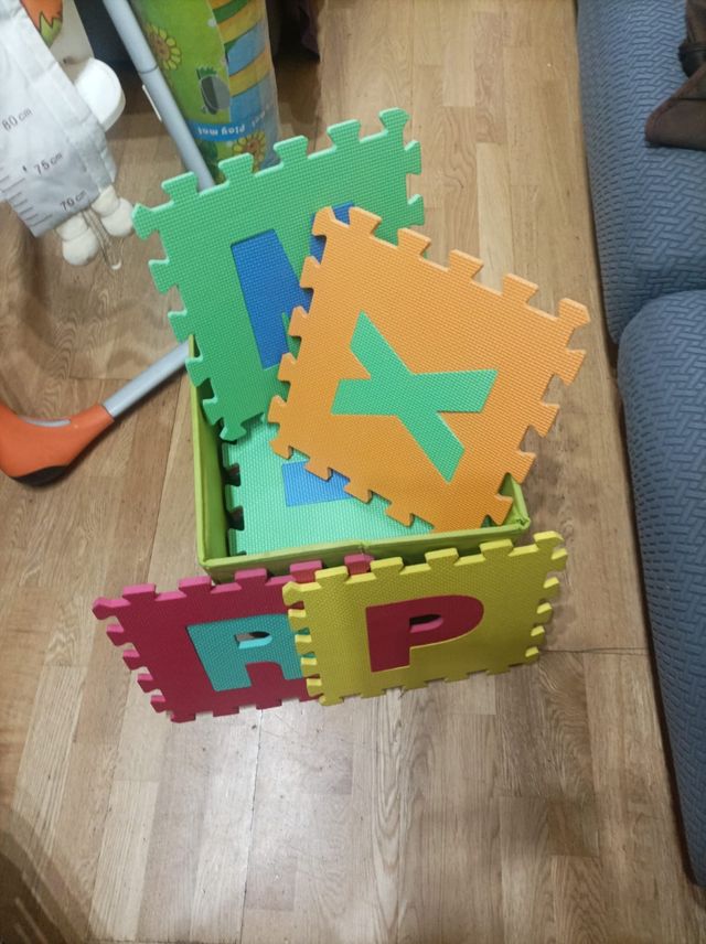 Detalles del productoAlfombra de goma con piezas de puzzle que forman letras del abecedario. Ideal para que los niños aprendan jugando.