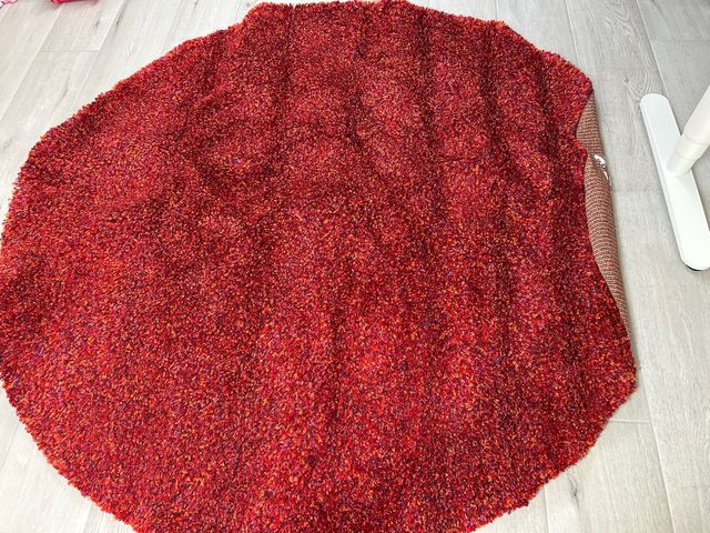 Alfombra redonda roja y naranja