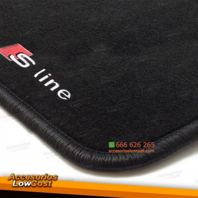 Detalles del productoREF: AL021373 Juego de 4 alfombrillas específicas para AUDI A6 C6 04-11. Alfombras fabricadas en Velour de calidad y resistencia. El set incluye juego de las 4 alfombras. las delanteras con bordado logo S-Line Ribete del contorno de alfombrillas reforzados con acabado en hilo negro. ALFOMBRILLAS A6 C6 04-11 CON LOGO RIBETE NEGRO