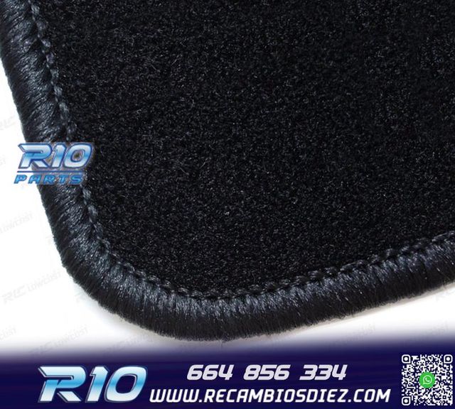 Detalles del productoMóvil: 664 856 334 - Referencia: ALFMINI. ALFOMBRILLAS PARA MINI Valido para: MINI : ONE / COOPER Modelo: R56 R57 Disponibles en Velour (seleccionar color) o en Goma (negras). Colores disponibles: Beige. Negro sin logo, con borde negro o rojo Negro con logo, con borde negro o rojo El set incluye 4 alfombrillas, delanteras y traseras. **Imagen genérica: Se envia el kit específico para su vehículo** **El precio puede variar según el vehiculo y acabado seleccionado. **
