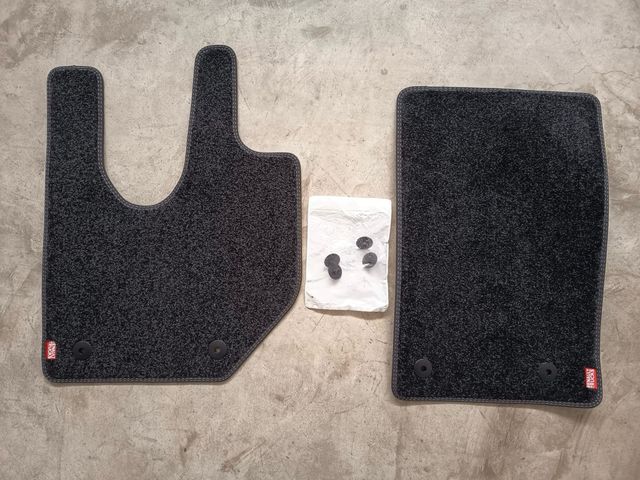 Set de alfombrillas para Renault T. - Alfombrilla delantera con forma ergonómica. - Alfombrilla trasera rectangular. - Incluye clips de fijación. - NUEVAS A ESTRENAR