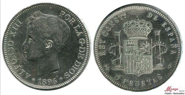 ALFONSO XIIJ MONEDA 5 PESETAS AÑO 1896