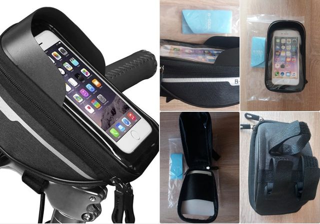 Detalles del productoAlforja para bicicleta con soporte para móvil, ideal para proteger tu dispositivo de la lluvia.