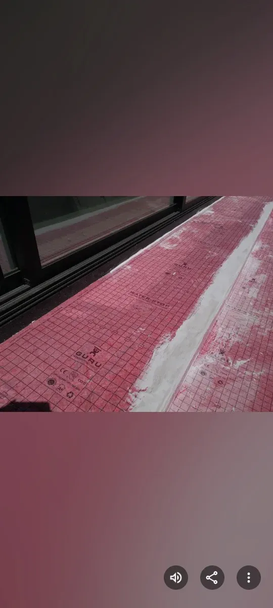alicatar terrazas. - Base impermeable de color rosa. - Textura cuadriculada. - Borde con material blanco.