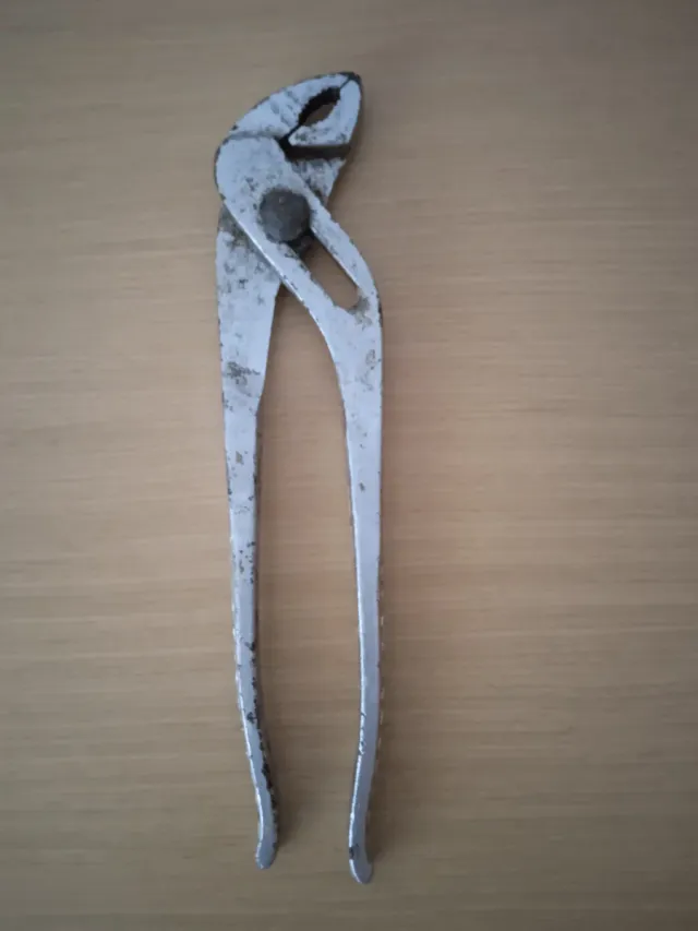 Alicate de fontanero de metal plateado. Presenta un diseño clásico con mandíbulas ajustables. Vintage. - Material: Metal. - Color: Plateado.