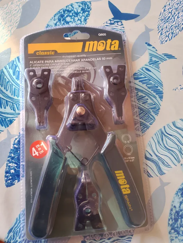 Detalles del productoAlicate de la marca Mota, modelo Q800, para abrir y cerrar circlips.
