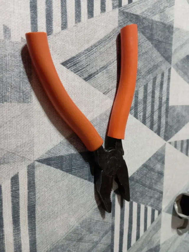 Alicates de corte y pelacables con mangos naranjas. - Diseño ergonómico para un agarre cómodo. - Fabricados en metal resistente.