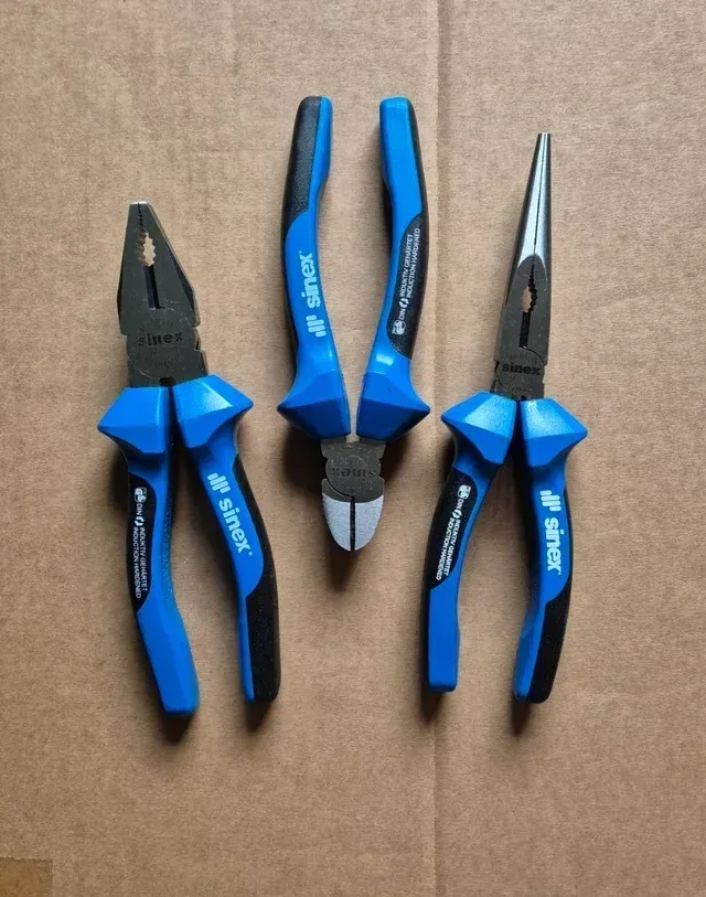 Detalles del productoJuego de alicates: alicate universal, alicate de punta fina redonda y alicate corta alambres. Marca Sinex