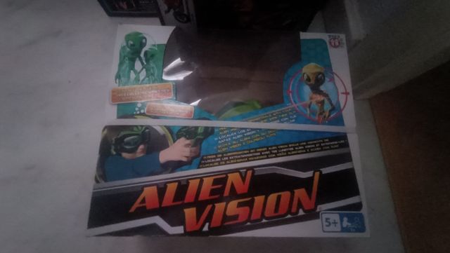 Detalles del productoJuego Alien Vision en buen estado. Incluye gafas y pistola. - Localiza aliens con las gafas. - Dispara con la pistola. - Ideal para niñ@s a partir de 5 años.