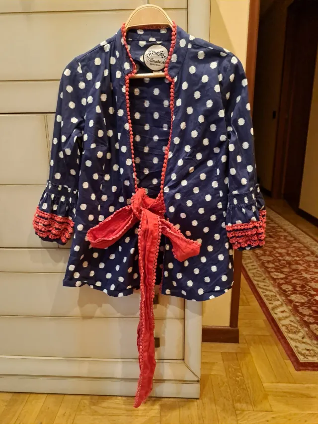 Almatrichi Camisa Azul con Lunares Blancos y Rojo