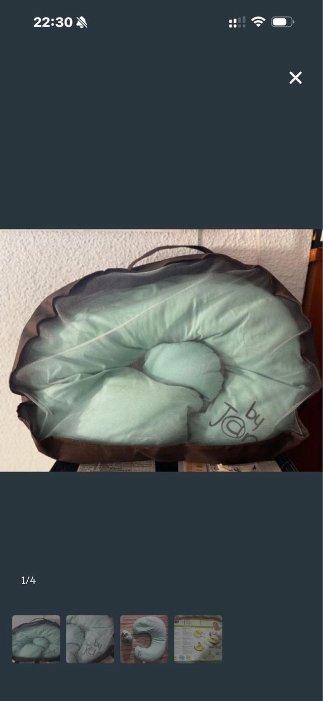 Detalles del productoAlmohada de lactancia en color verde menta, con funda de malla y asa para transporte. Incluye una pequeña almohada adicional.