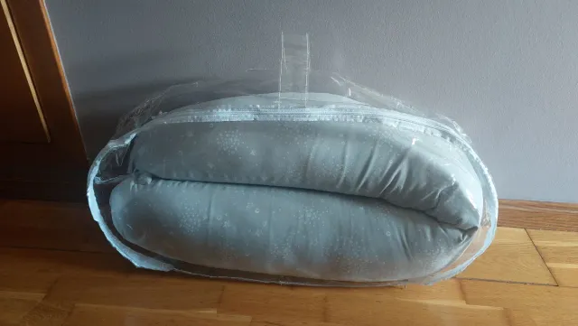 Almohada cómoda para embarazo y lactancia. Su diseño se adapta a tu cuerpo. Tiene muy poco uso. - Funda con estampado de estrellas. - Cierre de cremallera.