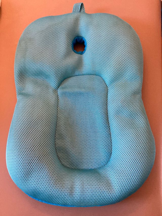 Detalles del productoAlmohada de malla transpirable para el baño del bebé. Su diseño ergonómico se adapta al cuerpo del pequeño.