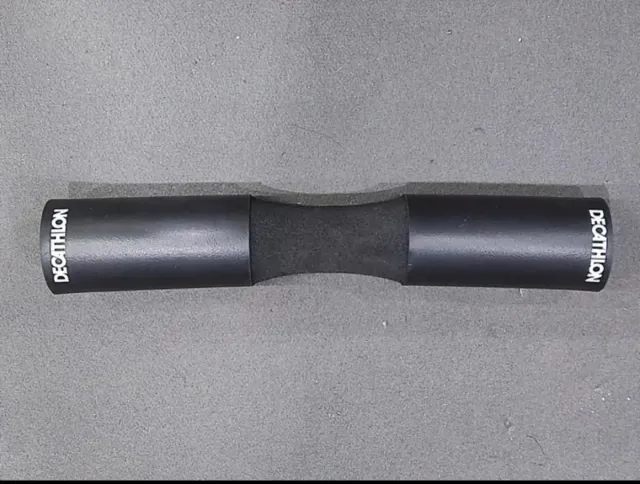 Detalles del productoProtector de espuma para barra de Decathlon. Diseñado para colocar en la barra y aliviar la presión en cuello y hombros durante el ejercicio.