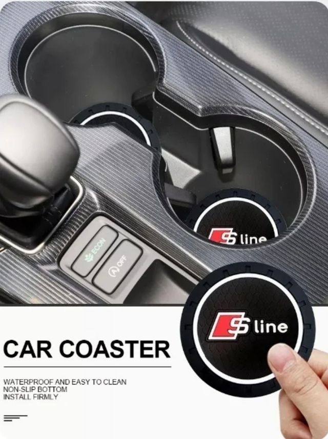Detalles del productoJuego de 1 almohadilla para soporte de botella de agua,botellín,lata.. con el logo de SLine de Audi en 3D.