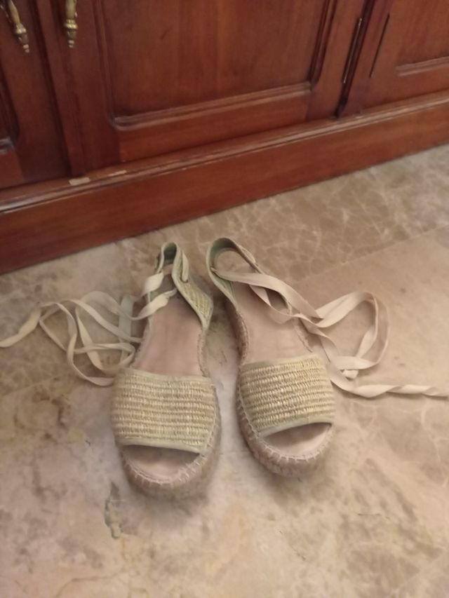Preciosas alpargatas de esparto en color beige con filo de color verde claro. Ideales para el verano.