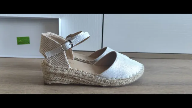 Alpargatas cuña beige y plata