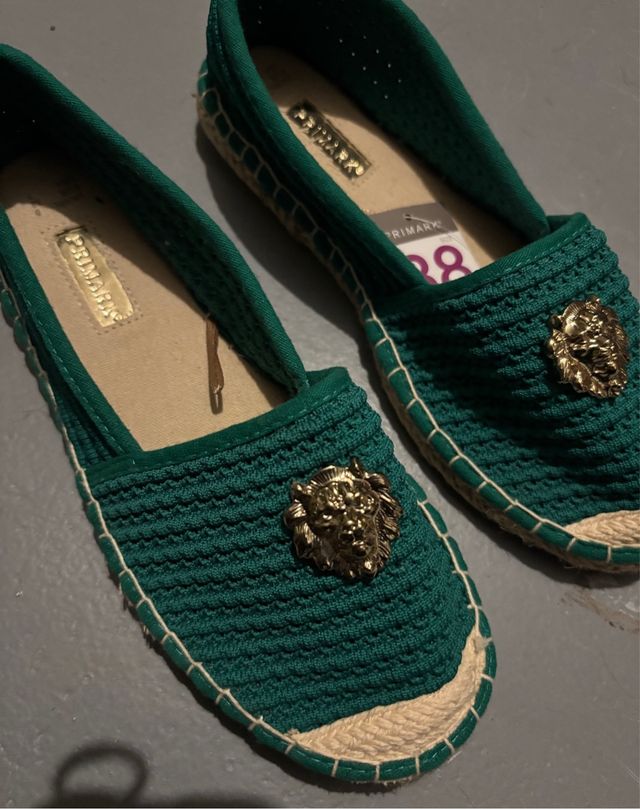 Alpargatas verdes con tachuela de un león dorado