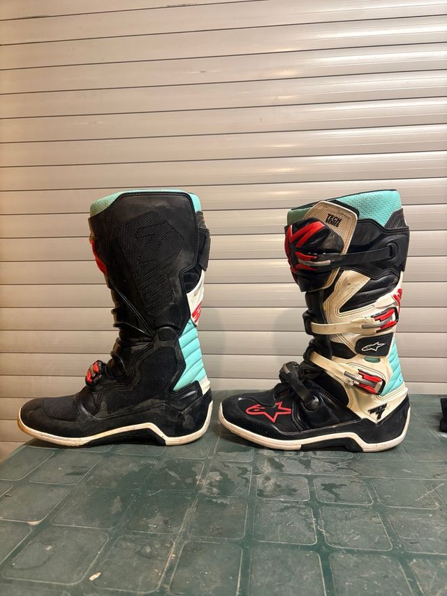 Botas de motocross Alpinestars Tech 7. - Color negro con detalles en turquesa y rojo. - Cierre con hebillas y velcro.