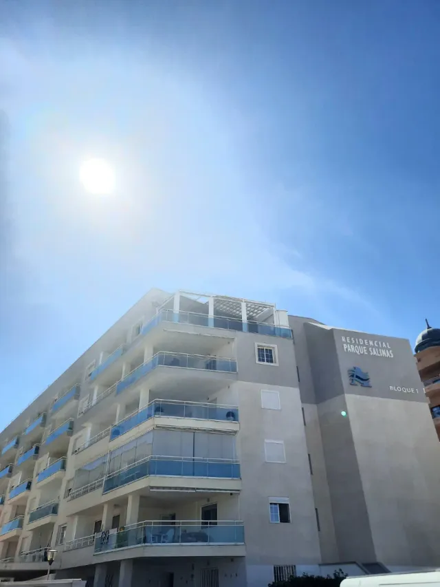 El residencial tiene piscina, parque infantil, merendero, campo de fútbol, con acceso al paseo marítimo de la playa.