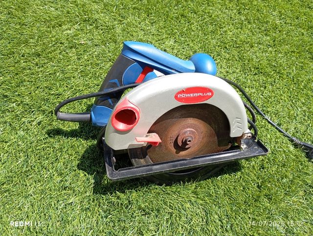 630-26-49-61 vende sierra circular de la marca Powerplus. Está en buen estado, aunque la cuchilla presenta algo de óxido.