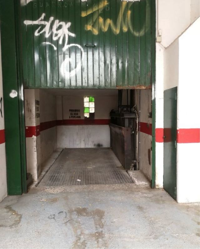 Entrada vehículo calle Sangenis, para motos o turismo pequeño, difícil acceso, pero mayor seguridad puesto que se accede por plataforma elevadora y escalera peatonal