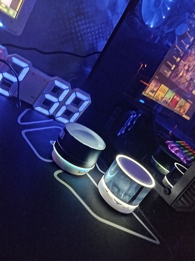 Detalles del productoDos altavoces Bluetooth portátiles en perfecto estado. Ideales para llevar a cualquier parte. El blanco prácticamente sin usar, los dos de 5W y con luces.