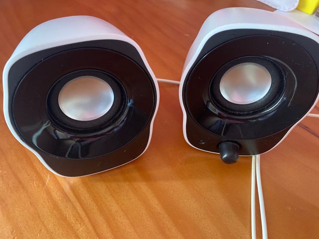 Altavoces Logitech blancos, conexión con cable En muy buen estado Volumen ajustable con ruleta