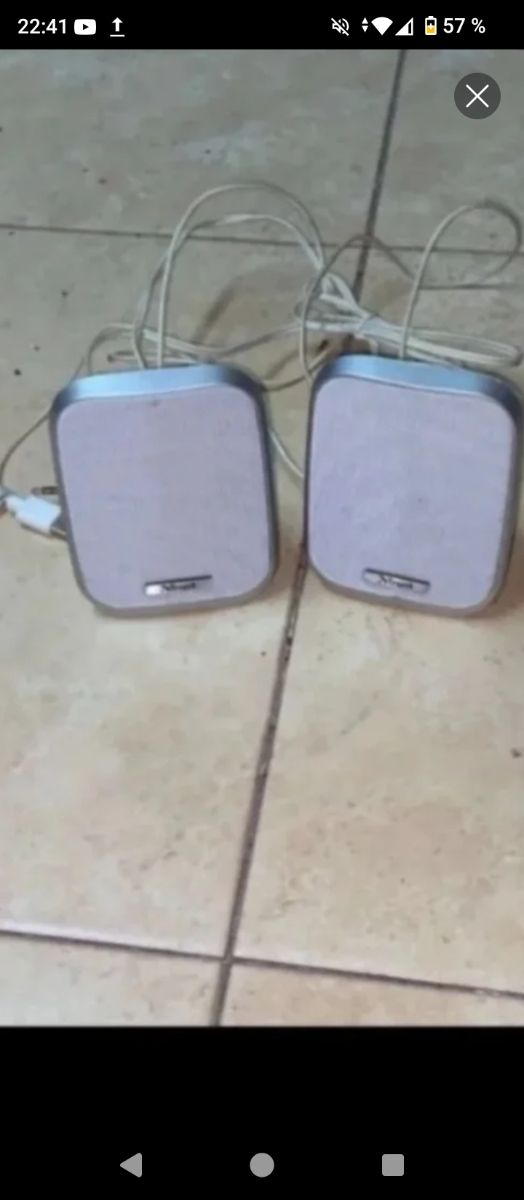 Altavoces compactos para ordenador. - Diseño moderno en color plateado y blanco. - Conexión por cable. Casi sin uso