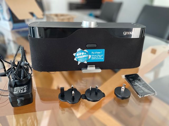 Altavoz, radio y despertador inhalámbrico Gear 4 para Iphone y Ipod con. Para estrenar. Con todos los accesorios.