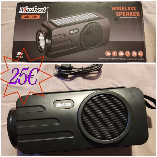Detalles del productoSe vende altavoz inalámbrico Maxbest MB-T130. Está en muy buen estado.