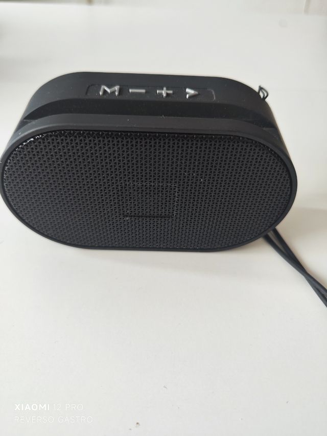 Altavoz inalámbrico portátil con un diseño moderno y compacto.