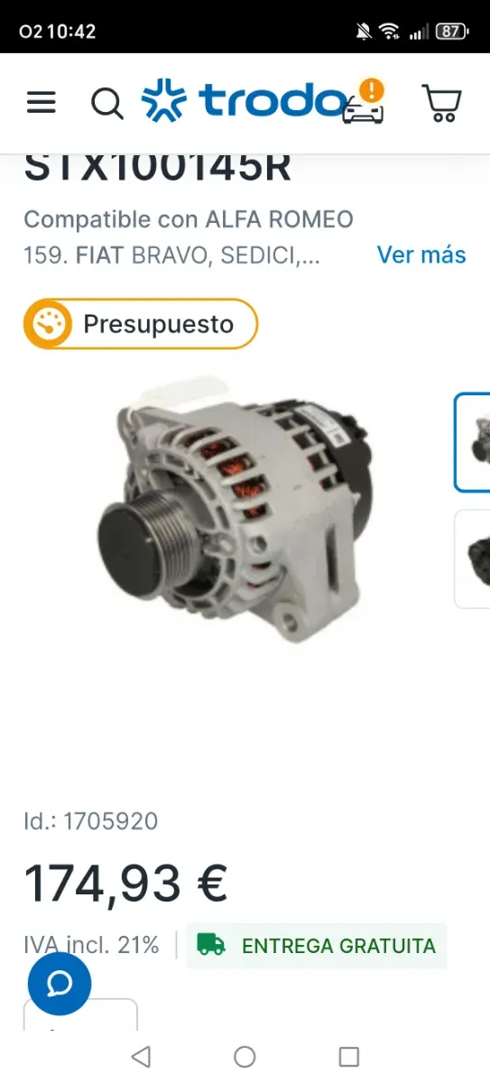 Detalles del productoSe vende alternador y compresor de aire acondicionado para Alfa Romeo GT.