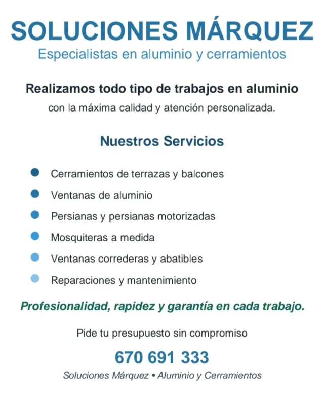 Detalles del productoServicios profesionales de aluminio y cerramientos.